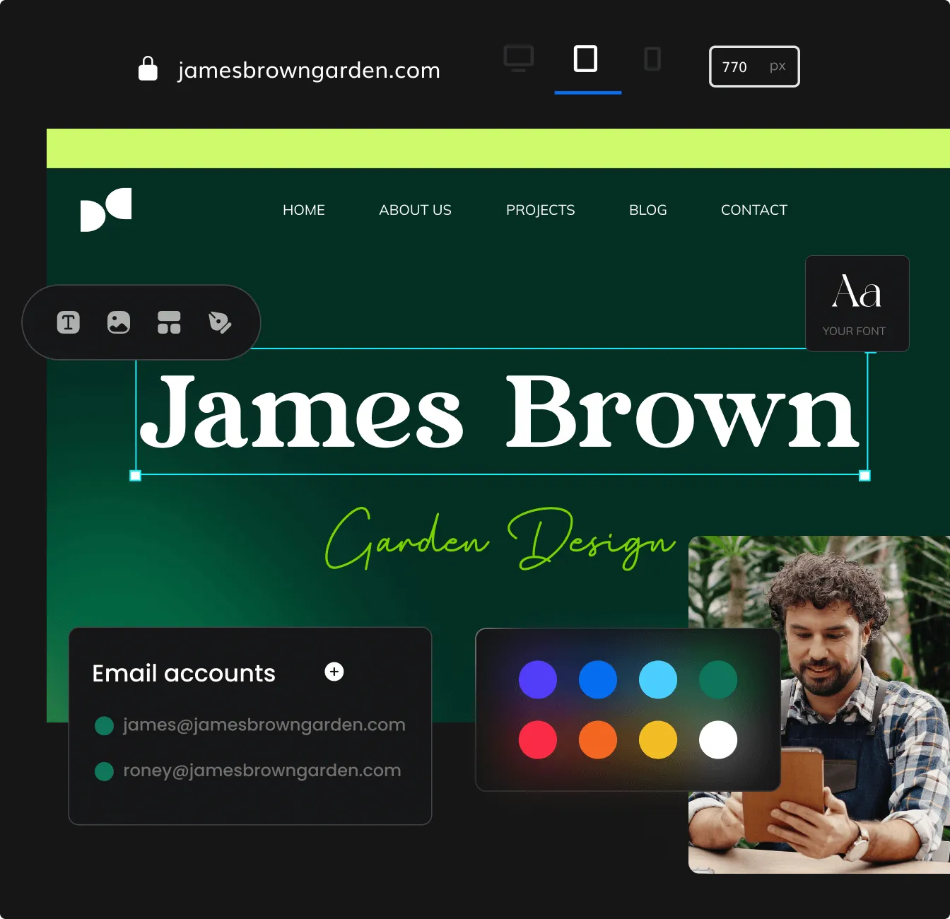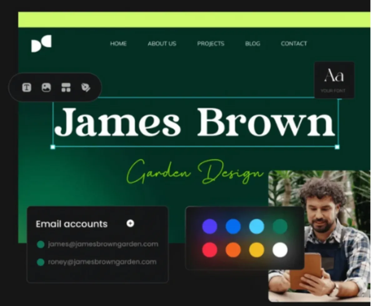 A custom domain, business email accounts, a beautiful logo, five-star reviews, and social media posts to make you stand out. Manage your reputation across trusted platforms and review sites from one place. Making your brand look more professional is only a few clicks away.