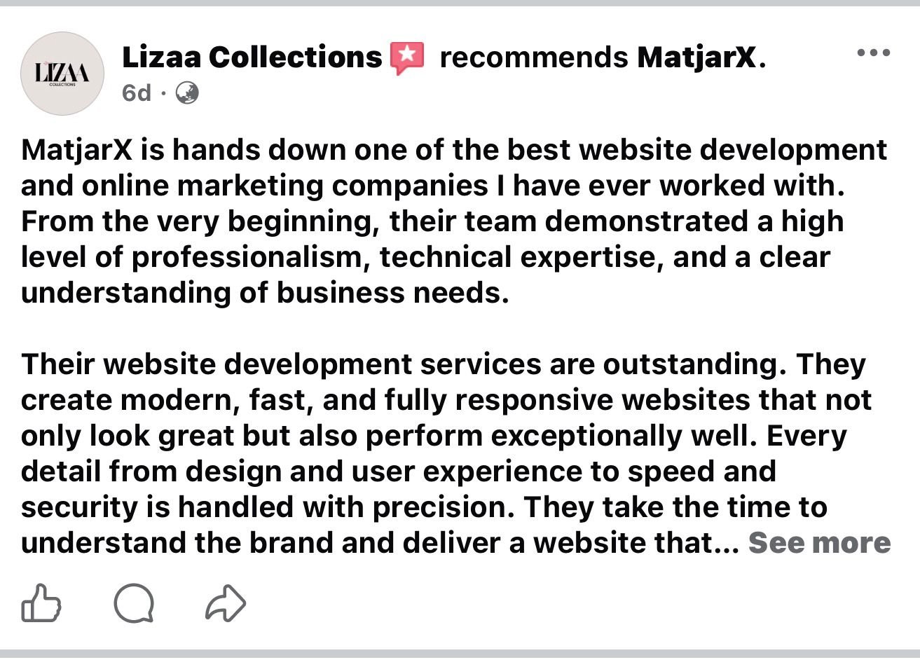 Stop wasting time and money on DIY sites or costly agencies. MatjarX delivers agency quality websites at an affordable price, with a team to help you build and grow your online presence.